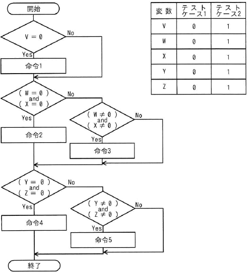 ・テストケース1(全ての変数が0)では、分岐が全て「No」に評価される経路を通ります。